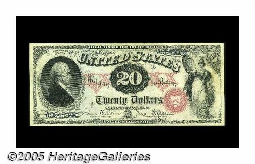 <B>Fr. 129 $20 1878 Legal Tender Very Fine-Extremely Fine.</B></I> The red "XX's" appear only on two Friedberg numbers for this design, necessitating including either Fr. 128 or 129 in a type collection. Scrutiny reveals hard-to-see light folds on this $20 that will deliver value in the long run.