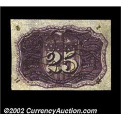 Fr. 1290 25ó Second Issue New. The face has two large margins and two very tight margins. The back is well centered. Although the note is 100% uncirculated, it has a bit too much surface soil for the Choice grade. Important notice: We expect to be auctioning lots at the rate of 200-250 per hour. Sometimes eBay Premier live bid software cannot keep up with that pace, so we strongly recommend that you place a realistic proxy bid now as insurance to avoid disappointment. Also please note that all Heritage/CAA lots purchased through eBay Premier carry a 20% Buyer's Premium. Please make sure you read the Terms and Conditions.