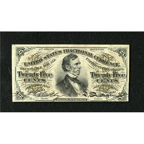 <B>Fr. 1291 25c Third Issue Choice New.</B></I> Bright bronzing and cavernous embossing are found on this beautiful red back Fessenden. Only a small bottom margin keeps this lovely note from the Gem grade.<BR><BR><b>Shipping:</b> Coins & Currency (<a target="_blank" href="http://www.heritageauctions.com/common/shipping.php">view shipping information</a>)