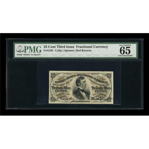 Fr. 1291 25c Third Issue PMG Gem Uncirculated 65