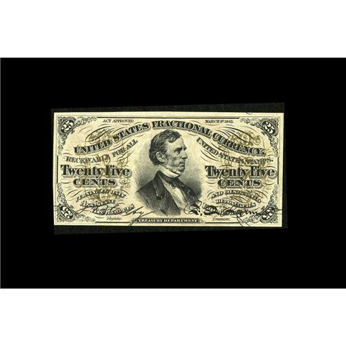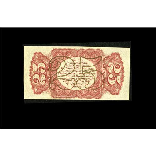 <B>Fr. 1291 25c Third Issue Very Choice New.</B></I> Bright bronzing and deep embossing are both easily seen on this red back Fessenden note. If the bottom and left margins were a little wider this would easily jump into the gem category as the paper quality is superb.