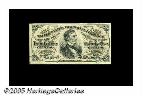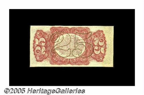 <B>Fr. 1291 Milton 3R25.1 25¢ Third Issue Gem New.</B></I> Deep original embossing, terrific color, and bright bronze all combine on this Red Back Fessenden with a partial face-plate number in its lower left corner.