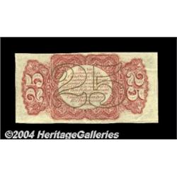 Fr. 1292 25c Third Issue Choice About New. A bright and fresh Red Back Fessenden, with excellent centering, brilliant colors and good eye appeal. A tough number that gives the visual impact of a Gem. <BR><BR><B>Important notice:</B> Heritage usually auctions material at the rate of 200-250 lots per hour. On some occasions eBay Live bid software or the Internet may not be able to keep up with the pace of the auction. We recommend placing a realistic absentee bid now as insurance to avoid disappointment. Occasionally the auctioneer may eliminate or reject an eBay Live bid, and the auctioneer may also reopen a lot after the close of the eBay live bidding (usually because we missed an audience bid), and may reject your bid even if it shows you as the winning bidder. By bidding via eBay Live, you agree that Heritage may award the lot to another bidder at its sole discretion under the circumstances described above or any other reasonable circumstances. Since eBay bids are not shown to us until we open the lot on the floor, we treat those bids just like floor bids. In most cases the floor responds before the eBay bid is presented to us, due to Internet lag time, so for consistency we have made it a policy that floor bids are always considered first over tie eBay live bids. Also please note that all Heritage lots purchased through eBay Live carry a 20% Buyer's Premium. Please make sure you read the Terms and Conditions before you bid. <BR><BR><B>IMPORTANT ANNOUNCEMENT ABOUT RESERVES:</B> Heritage now divulges all reserves on its web site 7 days before every auction. If you want to know whether the reserve on this lot has been met, and if not, what the reserve amount is, please visit this lot page on the HeritageCoin.com web site, or email: bid@HeritageGalleries.com
