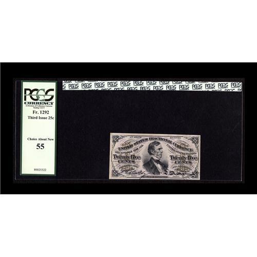 Fr. 1292 25c Third Issue PCGS Choice About New 55. This Fr. 1292 25c Third Issue PCGS Choice About N