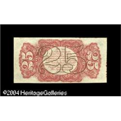 Fr. 1292 25c Third Issue Very Choice New. But for a <B>Fr. 1292 25c Third Issue Very Choice New.</B></I> But for a slightly tight top margin, this scarce red back Fessenden is a perfect Gem. The original embossing is unusually bold. <BR><BR><B>Important notice:</B> Heritage usually auctions material at the rate of 200-250 lots per hour. On some occasions eBay Live bid software or the Internet may not be able to keep up with the pace of the auction. We recommend placing a realistic absentee bid now as insurance to avoid disappointment. Occasionally the auctioneer may eliminate or reject an eBay Live bid, and the auctioneer may also reopen a lot after the close of the eBay live bidding (usually because we missed an audience bid), and may reject your bid even if it shows you as the winning bidder. By bidding via eBay Live, you agree that Heritage may award the lot to another bidder at its sole discretion under the circumstances described above or any other reasonable circumstances. Since eBay bids are not shown to us until we open the lot on the floor, we treat those bids just like floor bids. In most cases the floor responds before the eBay bid is presented to us, due to Internet lag time, so for consistency we have made it a policy that floor bids are always considered first over tie eBay live bids. Also please note that all Heritage lots purchased through eBay Live carry a 20% Buyer's Premium. Please make sure you read the Terms and Conditions before you bid. This lot is being auctioned in conjunction with a live floor auction by Heritage Galleries & Auctioneers. All final auction and invoice information will be supplied by Heritage Galleries & Auctioneers, and all other information should be considered preliminary. Lot:15415