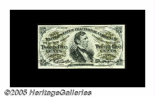 <B>Fr. 1294 Milton 3R25.2 25¢ Third Issue Superb Gem New.</B></I> Huge, even margins, deep original embossing and perfect colors of the inks, bronze and paper all combine on this outstanding 25¢ Fessenden. Even this common number is difficult to locate in this perfect state of preservation.