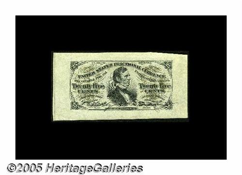 <B>Fr. 1294SP 25¢ Third Issue Wide Margin Pair About New.</B></I> Milton 3P25F.1a, 3P25R.2. Both the face and back are lightly aged. The face has some light corner folds and the back a long horizontal fold near the top edge.