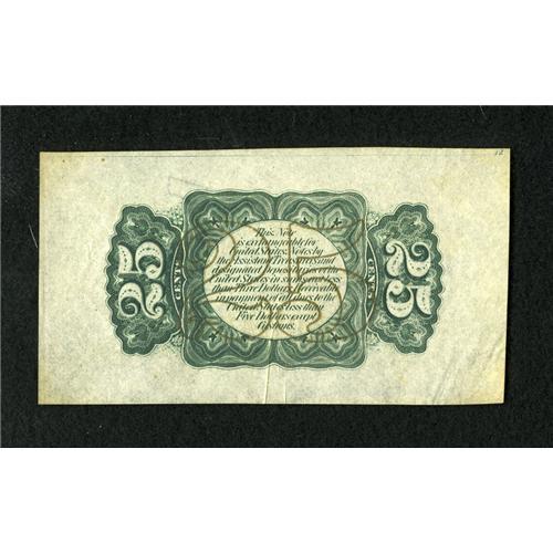 <B>Fr. 1294SP 25c Third Issue Medium Margin Back Specimen About New.</B></I> This example has been cut down from a wide margin. The upper frame line is observed along with plate number 12 in the upper right corner. There is also a pre-printing paper crinkle at bottom center.<BR><I>From The Jacob and Heather Dedman Collection</B></I><BR><BR><b>Shipping:</b> Coins & Currency (<a target="_blank" href="http://www.heritageauctions.com/common/shipping.php">view shipping information</a>)