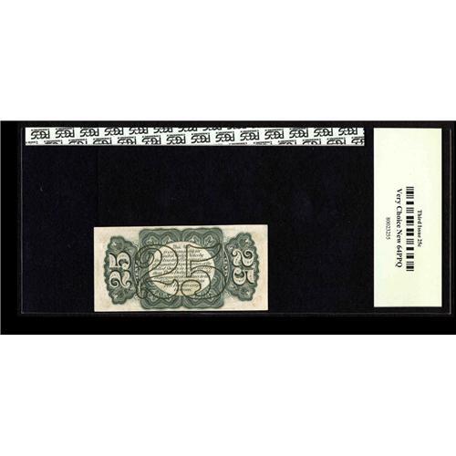 <B>Fr. 1295 25c Third Issue PCGS Very Choice New 64PPQ.</B></I> Here is a near-Gem example, with beautiful color, bright bronze and extremely sharp print quality.