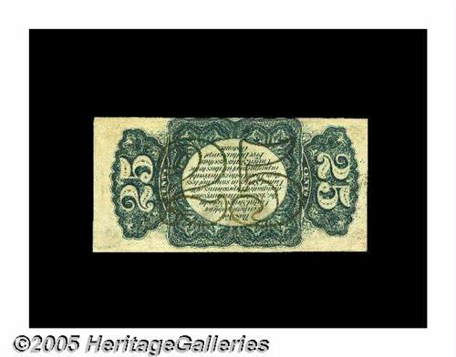 <B>Fr. 1295 Milton 3R25.2k 25¢ Third Issue Inverted Back Engraving New.</B></I> This rare invert lacks the centering on both face and back for a grade higher than New. It's one of only two examples known.