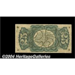 Fr. 1297 25c Third Issue About New. A nice problem-free lightly circulated example of this scarce Fiber Paper Fessenden. <BR><BR><B>Important notice:</B> Heritage usually auctions material at the rate of 200-250 lots per hour. On some occasions eBay Live bid software or the Internet may not be able to keep up with the pace of the auction. We recommend placing a realistic absentee bid now as insurance to avoid disappointment. Occasionally the auctioneer may eliminate or reject an eBay Live bid, and the auctioneer may also reopen a lot after the close of the eBay live bidding (usually because we missed an audience bid), and may reject your bid even if it shows you as the winning bidder. By bidding via eBay Live, you agree that Heritage may award the lot to another bidder at its sole discretion under the circumstances described above or any other reasonable circumstances. Since eBay bids are not shown to us until we open the lot on the floor, we treat those bids just like floor bids. In most cases the floor responds before the eBay bid is presented to us, due to Internet lag time, so for consistency we have made it a policy that floor bids are always considered first over tie eBay live bids. Also please note that all Heritage lots purchased through eBay Live carry a 20% Buyer's Premium. Please make sure you read the Terms and Conditions before you bid. <BR><BR><B>IMPORTANT ANNOUNCEMENT ABOUT RESERVES:</B> Heritage now divulges all reserves on its web site 7 days before every auction. If you want to know whether the reserve on this lot has been met, and if not, what the reserve amount is, please visit this lot page on the HeritageCoin.com web site, or email: bid@HeritageGalleries.com
