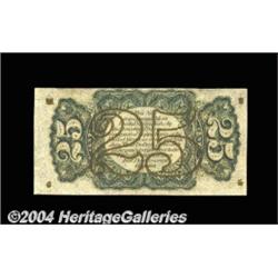 Fr. 1297 25c Third Issue Gem New. Incredibly fresh for a Fiber Paper note, with crinkly surfaces, bright bronzing and the kind of sharp printing that is virtually never seen on Fiber Paper notes. All the margins are full, the bottom being unusually wide. This pretty note has a partial plate number on both the face and back. <BR><BR><B>Important notice:</B> Heritage usually auctions material at the rate of 200-250 lots per hour. On some occasions eBay Live bid software or the Internet may not be able to keep up with the pace of the auction. We recommend placing a realistic absentee bid now as insurance to avoid disappointment. Occasionally the auctioneer may eliminate or reject an eBay Live bid, and the auctioneer may also reopen a lot after the close of the eBay live bidding (usually because we missed an audience bid), and may reject your bid even if it shows you as the winning bidder. By bidding via eBay Live, you agree that Heritage may award the lot to another bidder at its sole discretion under the circumstances described above or any other reasonable circumstances. Since eBay bids are not shown to us until we open the lot on the floor, we treat those bids just like floor bids. In most cases the floor responds before the eBay bid is presented to us, due to Internet lag time, so for consistency we have made it a policy that floor bids are always considered first over tie eBay live bids. Also please note that all Heritage lots purchased through eBay Live carry a 20% Buyer's Premium. Please make sure you read the Terms and Conditions before you bid. <BR><BR><B>IMPORTANT ANNOUNCEMENT ABOUT RESERVES:</B> Heritage now divulges all reserves on its web site 7 days before every auction. If you want to know whether the reserve on this lot has been met, and if not, what the reserve amount is, please visit this lot page on the HeritageCoin.com web site, or email: bid@HeritageGalleries.com