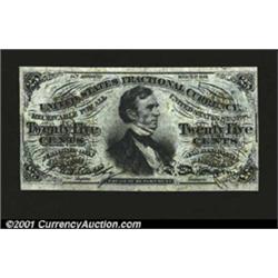 Fr. 1298 25¢ Third Issue Choice New.<p>The right face margin is tight but clear of the design, and the back just touches at the left edge, but otherwise this is a very nice example of this scarce "a" Fiber Paper Fessenden. Important notice: We expect to be auctioning lots at the rate of 200-250 per hour. Sometimes eBay Premier live bid software cannot keep up with that pace, so we strongly recommend that you place a realistic proxy bid now as insurance to avoid disappointment. Also please note that all Heritage/CAA lots purchased through eBay Premier carry a 20% Buyer's Premium.