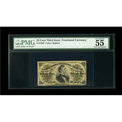 Fr. 1298 25c Third Issue PMG About Uncirculated 55. The Fr. 1298 25c Third Issue PMG About Uncircula