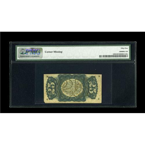 <B>Fr. 1298 25c Third Issue PMG About Uncirculated 55.</B></I> The comment mentions a missing corner tip, which is indeed correct. A very scarce number nonetheless, and still easily worth...