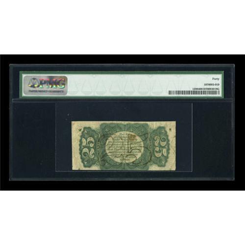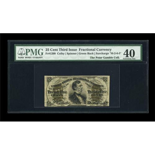 <B>Fr. 1299 25¢ Third Issue PMG Extremely Fine 40.</B></I> The color is a bit dull on this solid surcharge Fessenden, but the surcharges themselves are bold and easily identified. <BR><I>From The Peter Gamble Collection.</B></I><BR><BR><b>Shipping:</b> Coins & Currency (<a target="_blank" href="http://www.heritageauctions.com/common/shipping.php">view shipping information</a>)