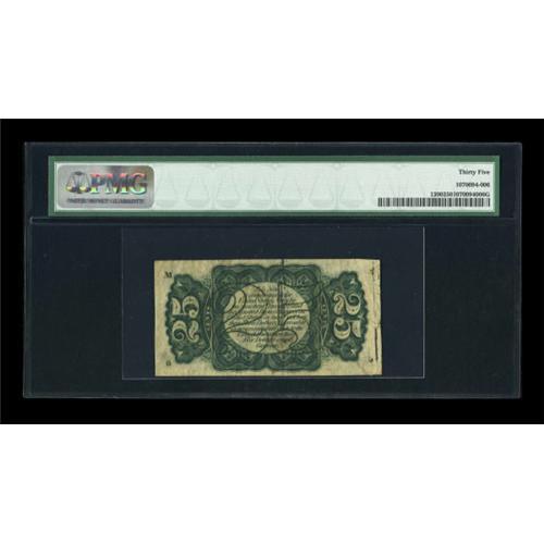 <B>Fr. 1300 25¢ Third Issue PMG Choice Very Fine 35.</B></I> This type is distinguished by fiber paper, the surcharge M-2-6-5, the solid bronzing on the face and the letter "a." The brittle paper used was susceptible to damage. This piece is one of the few that have survived problem-free. <BR><I>From The Peter Gamble Collection.</B></I><BR><BR><b>Shipping:</b> Coins & Currency (<a target="_blank" href="http://www.heritageauctions.com/common/shipping.php">view shipping information</a>)
