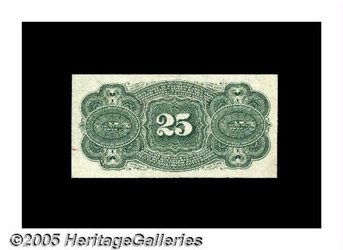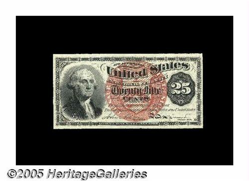 <B>Fr. 1301 Milton 4R25.1 25¢ Fourth Issue Superb Gem New.</B></I> Outlandish quality for the type, with boardwalk margins, bright, fresh color, ideal back centering and original paper quality. As an additional bonus, the note has the red seal-plate number "10" embedded in the engraving below Washington's portrait.