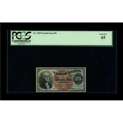 Fr. 1303 25¢ Fourth Issue PCGS Gem New 65. A broadly-ma