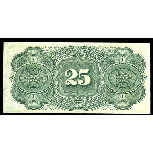 <B>Fr. 1303(5) Milton 4R25.5 25¢ Fourth Issue Very Choice New.</B></I> The seal varies somewhat in color, but tends toward brown, primarily at the bottom and right. A very pretty note, with great colors and a close bottom margin.