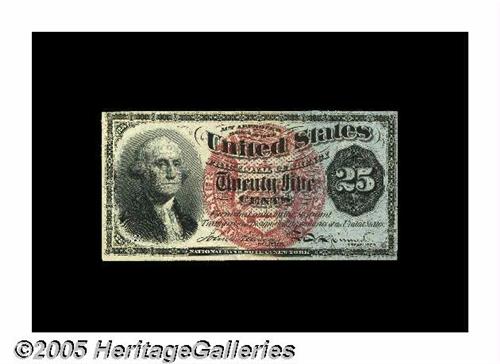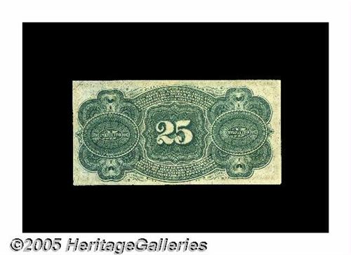 <B>Fr. 1303 Milton 4R25.4 25¢ Fourth Issue Choice New.</B></I> Very nicely colored, but with rather close margins. An early collector envelope is included, indicating that the note was acquired from J.C. Randall on November 26, 1898.