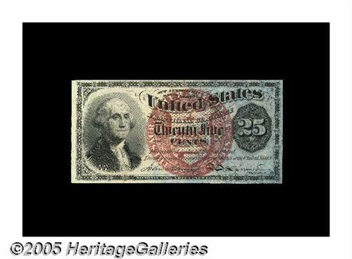 <B>Fr. 1303 Milton 4R25.4 25¢ Fourth Issue Very Choice New.</B></I> A near-Gem example of this Large Seal Blue End Paper variety. The colors are striking.