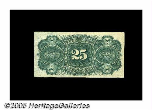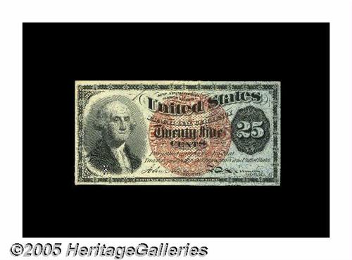 <B>Fr. 1307 Milton 4R25.4c 25¢ Fourth Issue Very Choice New.</B></I> The slightly smaller seal with the blue fibers at the right.