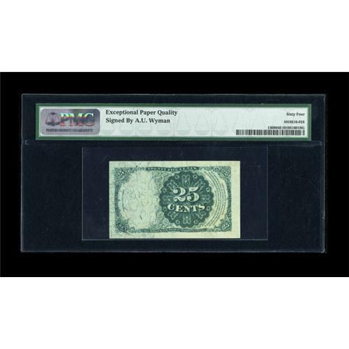 <B>Fr. 1309 25c Fifth Issue With A.U. Wyman Courtesy Autograph PMG Choice Uncirculated 64 EPQ.</B></I> Decent margins are noted on this near-Gem issue. A.U. Wyman's courtesy autograph is seen on the face.<BR><BR><b>Shipping:</b> Coins & Currency (<a target="_blank" href="http://www.heritageauctions.com/common/shipping.php">view shipping information</a>)