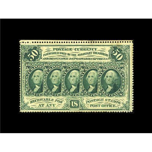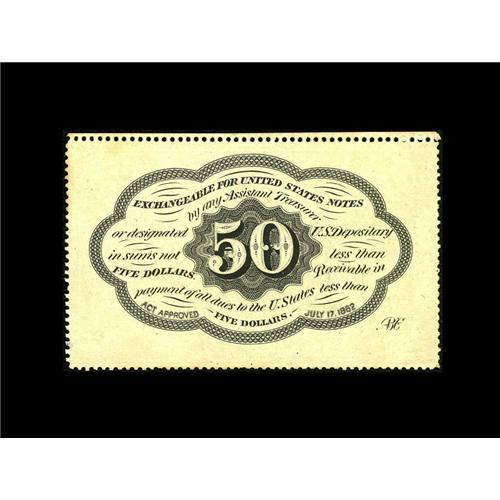 <B>Fr. 1310 50c First Issue Choice New.</B></I> This note is perforated all around, though the perforations touch a part of the design at the right. The paper quality is most pleasing.<BR><I>From The Bill and Kathy Stella Currency Collection</B></I><BR><BR><b>Shipping:</b> Coin/Currency (<a target="_blank" href="http://www.heritageauctions.com/common/shipping.php">view shipping information</a>)