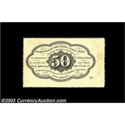 Fr. 1310 50c First Issue Very Choice New. Deeply perforated all around, with all four margins spaced farther away from the design than typical for the issue. The piece has the look of a Superb Gem when viewed from the face, but the back has a very minor skinned spot, not touching the design.  Important notice: Heritage usually auctions material at the rate of 200-250 lots per hour. On some occasions eBay Live bid software or the Internet may not be able to keep up with the pace of the auction. We recommend placing a realistic absentee bid now as insurance to avoid disappointment. Occasionally the auctioneer may eliminate or reject an eBay Live bid, and the auctioneer may also reopen a lot after the close of the eBay live bidding (usually because we missed an audience bid), and may reject your bid even if it shows you as the winning bidder. By bidding via eBay Live, you agree that Heritage may award the lot to another bidder at its sole discretion under the circumstances described above or any other reasonable circumstances. Also please note that all Heritage lots purchased through eBay Live carry a 20% Buyer's Premium. Please make sure you read the Terms and Conditions before you bid.