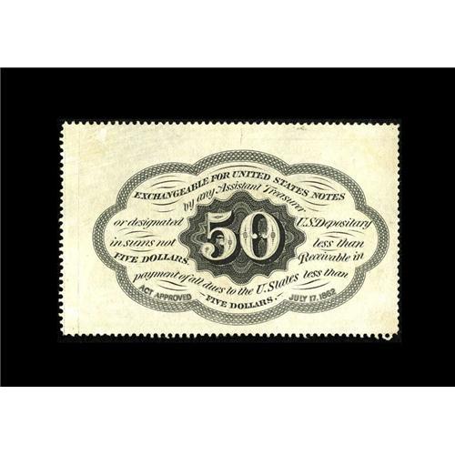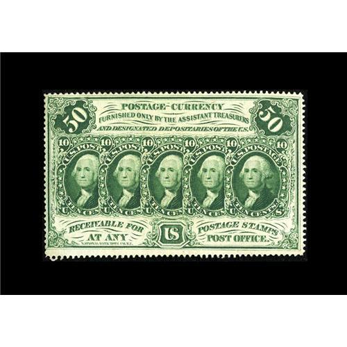 <B>Fr. 1311 50¢ First Issue Choice New.</B></I> Fully perforated all the way around, with spectacular color and more-than-acceptable centering. Fr. 1311 is many times scarcer than the with-monogram Fr. 1310, yet it typically sells for only a slight premium.<BR><I>From The Jacob and Heather Dedman Collection</B></I><BR><BR><b>Shipping:</b> Coins & Currency (<a target="_blank" href="http://www.heritageauctions.com/common/shipping.php">view shipping information</a>)
