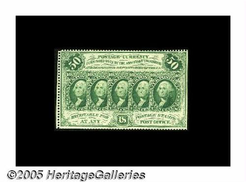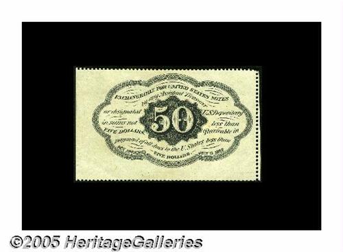 <B>Fr. 1311 50¢ First Issue Choice New.</B></I> The very scarce perforate no monogram issue, quite a challenge to locate this nice. Choice, rather than Gem due to centering issues.