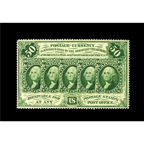 <B>Fr. 1311 50c First Issue Choice New.</B></I> Great front to back centering is noted on this original First Issue note. A tiny tip fold is noted on one of the perforated corners but misses the design.<BR><I>From The Bill and Kathy Stella Currency Collection</B></I><BR><BR><b>Shipping:</b> Coins & Currency (<a target="_blank" href="http://www.heritageauctions.com/common/shipping.php">view shipping information</a>)
