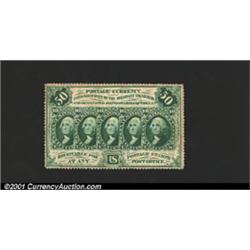 Fr. 1311 50c First Issue Extremely Fine.<p>A well-perforated example of this scarce number. Important notice: We expect to be auctioning lots at the rate of 200-250 per hour. Sometimes eBay Premier live bid software cannot keep up with that pace, so we strongly recommend that you place a realistic proxy bid now as insurance to avoid disappointment. Also please note that all Heritage/CAA lots purchased through eBay Premier carry a 20% Buyer's Premium.