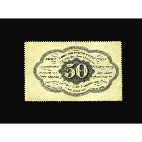 <B>Fr. 1311 50c First Issue Extremely Fine.</B></I> A lightly circulated example of this much scarcer, no-monogram perforated note. The perforations are full all the way around, and the note is an ideal piece for a high-end circulated collection. Very scarce in this grade.<BR><BR><b>Shipping:</b> Coins & Currency (<a target="_blank" href="http://www.heritageauctions.com/common/shipping.php">view shipping information</a>)