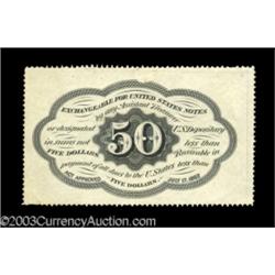 <TABLE cellSpacing=0 cellPadding=0 width="100%" bgColor=#000000 border=0><TBODY> <TR><TD width="100%"><TABLE cellSpacing=1 cellPadding=3 width="100%" border=0><TBODY><TR><TD width="100%" bgColor=#79735c><FONT face=arial color=#ffffff size=3><B>Description</B> </FONT></TD></TR><TR><TD width="100%" bgColor=#ffffff><FONT face=arial size=2><B>Fr. 1311 50c First Issue New.</B></I> A very scarce note with good perforations, although they touch the frame line at the right and bottom. There is a small damaged area at the top center of the back, apparently from a previous mounting. (300-up ) </FONT></TD></TR></TBODY></TABLE></TD></TR></TBODY></TABLE><BR><TABLE cellSpacing=0 cellPadding=0 width="100%" bgColor=#000000 border=0><TBODY><TR> Important notice: Heritage usually auctions material at the rate of 200-250 lots per hour. On some occasions eBay Live bid software or the Internet may not be able to keep up with the pace of the auction. We recommend placing a realistic absentee bid now as insurance to avoid disappointment. Occasionally the auctioneer may eliminate or reject an eBay Live bid, and the auctioneer may also reopen a lot after the close of the eBay live bidding (usually because we missed an audience bid), and may reject your bid even if it shows you as the winning bidder. By bidding via eBay Live, you agree that Heritage may award the lot to another bidder at its sole discretion under the circumstances described above or any other reasonable circumstances. Also please note that all Heritage lots purchased through eBay Live carry a 20% Buyer's Premium. Please make sure you read the Terms and Conditions before you bid.</TR></TBODY></TABLE>