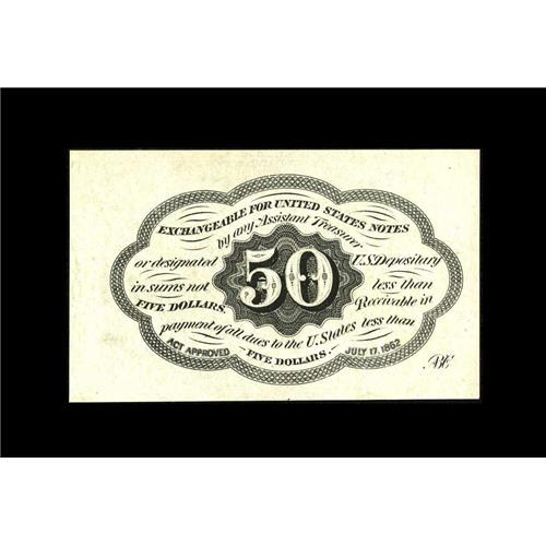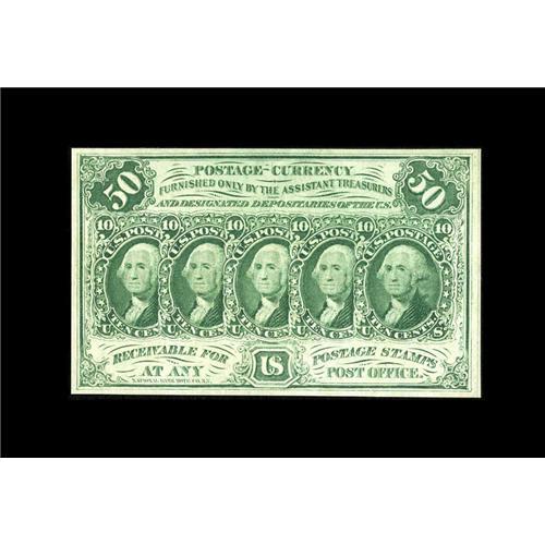<B>Fr. 1312 50¢ First Issue Choice About New.</B></I> There is an extremely light center fold on this otherwise Gem example. The margins are broad, the colors perfect, and the center fold is invisible under all but the closest of scrutiny.<BR><I>From The Jacob and Heather Dedman Collection</B></I><BR><BR><b>Shipping:</b> Coins & Currency (<a target="_blank" href="http://www.heritageauctions.com/common/shipping.php">view shipping information</a>)