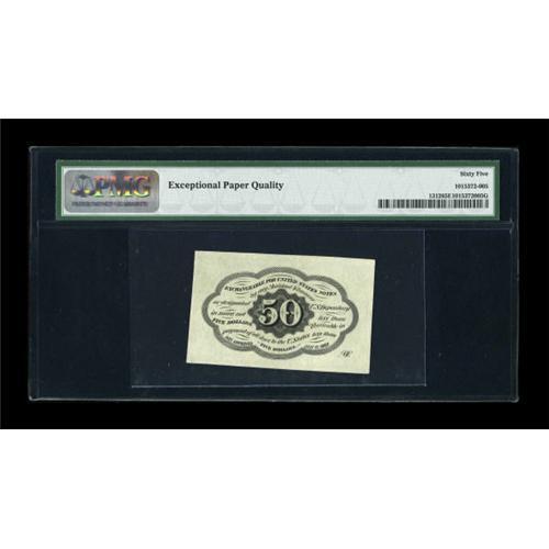 <B>Fr. 1312 50¢ First Issue PMG Gem Uncirculated 65 EPQ.</B></I> A handsome note, with broad margins, excellent color and strong eye appeal. The 65 EPQ grade appears to us to be a tad on the conservative side.<BR><BR><b>Shipping:</b> Coins & Currency (<a target="_blank" href="http://www.heritageauctions.com/common/shipping.php">view shipping information</a>)