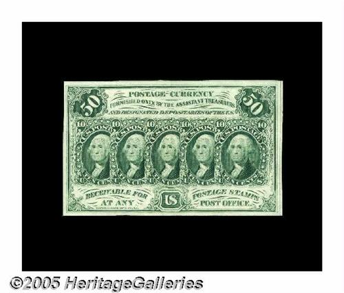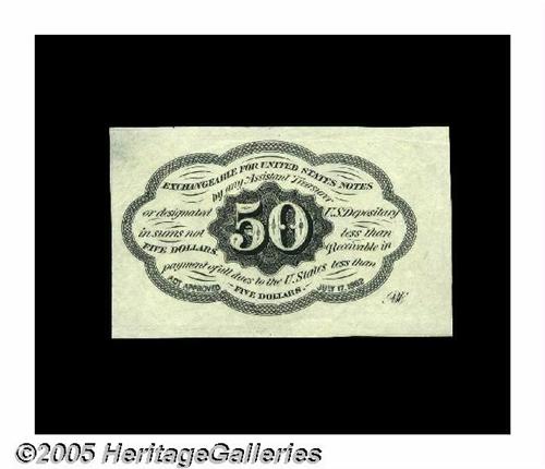 <B>Fr. 1312 50¢ First Issue Superb Gem New.</B></I> Beautifully margined, with ideal centering on both sides, bright colors, perfect print quality and tons of eye appeal. It's extremely difficult to find this type in this high a grade. A crackling-fresh beauty.