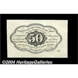 Fr. 1312 50c First Issue Gem New. This First Issue Fifty has huge margins all the way around, ideal centering of both sides and tremendous eye appeal. Seldom seen this nice. <BR><BR><B>Important notice:</B> Heritage usually auctions material at the rate of 200-250 lots per hour. On some occasions eBay Live bid software or the Internet may not be able to keep up with the pace of the auction. We recommend placing a realistic absentee bid now as insurance to avoid disappointment. Occasionally the auctioneer may eliminate or reject an eBay Live bid, and the auctioneer may also reopen a lot after the close of the eBay live bidding (usually because we missed an audience bid), and may reject your bid even if it shows you as the winning bidder. By bidding via eBay Live, you agree that Heritage may award the lot to another bidder at its sole discretion under the circumstances described above or any other reasonable circumstances. Since eBay bids are not shown to us until we open the lot on the floor, we treat those bids just like floor bids. In most cases the floor responds before the eBay bid is presented to us, due to Internet lag time, so for consistency we have made it a policy that floor bids are always considered first over tie eBay live bids. Also please note that all Heritage lots purchased through eBay Live carry a 20% Buyer's Premium. Please make sure you read the Terms and Conditions before you bid. <BR><BR><B>IMPORTANT ANNOUNCEMENT ABOUT RESERVES:</B> Heritage now divulges all reserves on its web site 7 days before every auction. If you want to know whether the reserve on this lot has been met, and if not, what the reserve amount is, please visit this lot page on the HeritageCoin.com web site, or email: bid@HeritageGalleries.com