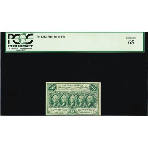 <B>Fr. 1312 50c First Issue PCGS Gem New 65.</B></I> Certainly an exceptional piece that is well margined with vibrant color and wonderful centering.