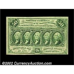 Fr. 1313 50c First Issue About New. Quite a nice example of this extremely scarce straight-edge no monogram type. Both sides are reasonably well margined, and the problem-free note has good eye appeal. Important notice: We expect to be auctioning lots at the rate of 200-250 per hour. Sometimes eBay Premier live bid software cannot keep up with that pace, so we strongly recommend that you place a realistic proxy bid now as insurance to avoid disappointment. Also please note that all Heritage/CAA lots purchased through eBay Premier carry a 20% Buyer's Premium. Please make sure you read the Terms and Conditions.