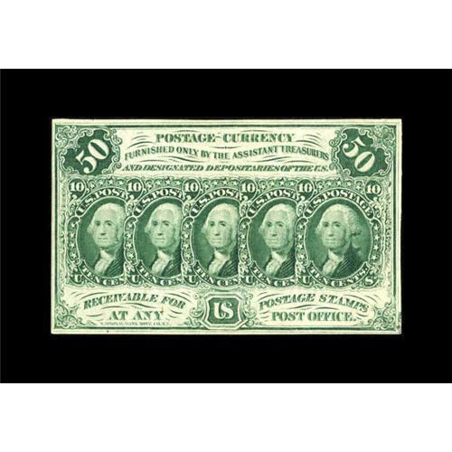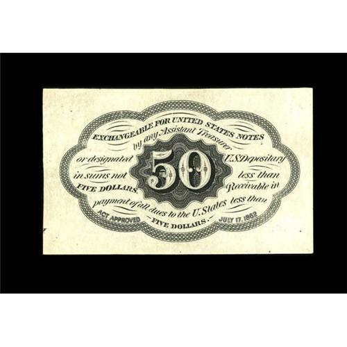<B>Fr. 1313 50c First Issue Choice New.</B></I> A nicely centered example of this very scarce note. The back is perfectly centered, and the paper surfaces are strictly original. This is one of the nicer examples we've seen of this tough number. This note does have approximately eight tiny pinholes.<BR><BR><b>Shipping:</b> Coins & Currency (<a target="_blank" href="http://www.heritageauctions.com/common/shipping.php">view shipping information</a>)
