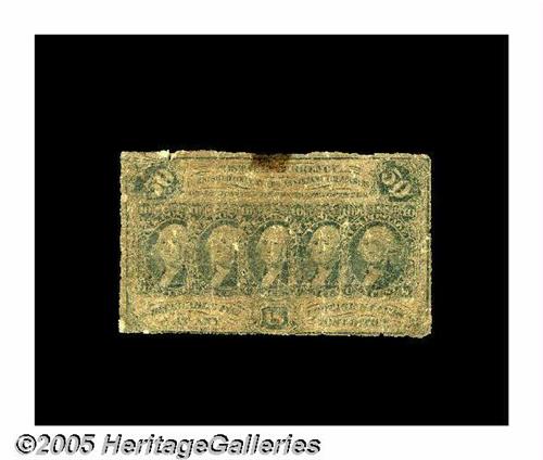 <B>Fr. 1313 Milton 1R50.1c 50¢ First Issue Inverted Back About Good.</B></I> From our January 1997 Sale of the Friedberg Collection, where it was described, "Listed in the Encyclopedia as unique, where a special notation is made that Dr. Limpert, writing in the February 1949 Numismatist, mentions that this variety is not known to exist. In spite of its extremely low grade, the note exhibits no problems but for a single small edge tear and a minor piece of old scotch tape. This one is certainly not a beauty, but it's about as rare as anything can be." <I>ex-Harry Jones, CAA MRF 1/97, to Tom O'Mara.</B></I>
