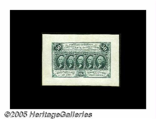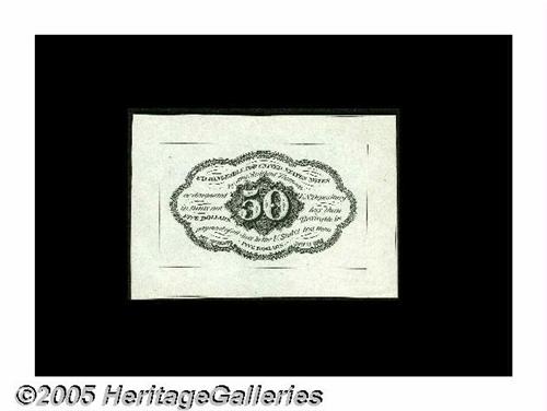 <B>Fr. 1313SP 50¢ First Issue Wide Margin Pair Superb Gem New.</B></I> Milton 1P50F.1, 1P50R.1. A hugely margined pair, with both face and back having full or partial cutting guides on all four sides. A beautiful pair.
