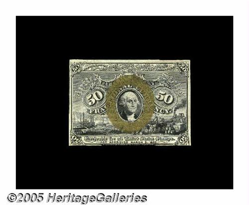 <B>Fr. 1314SP 50¢ Second Issue Narrow Margin Pair Very Choice New.</B></I> Milton 2S50F.1a and 2S50R.1. Both apparently removed from shields but very well done with virtually no traces remaining.