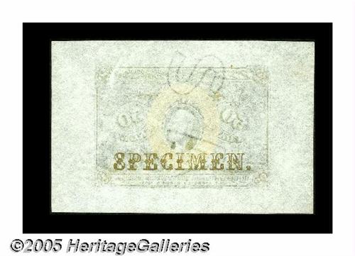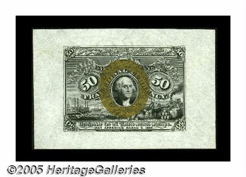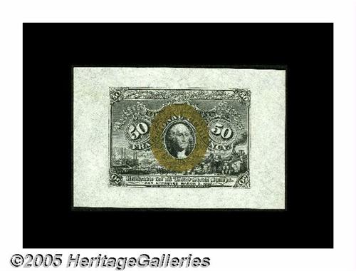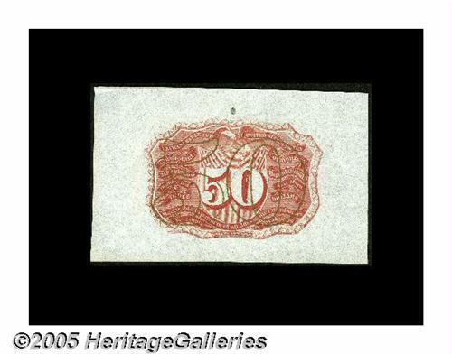 <B>Fr. 1314SP 50¢ Second Issue Wide Margin Pair Gem New.</B></I> Milton 2P50F.1, 2P50R.1. A perfectly matched pair for size and color. Both the face and back have their original embossing. There is one distraction with this otherwise impeccable pair: the back had received a glob of something above the design before printing. The plate pressure pushed it down so that it is embossed on the back.