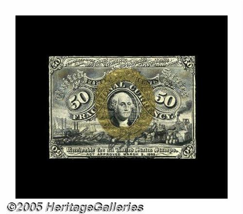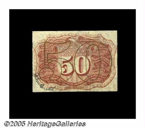 <B>Fr. 1314SP Milton 2S50F.1b and 2S50R.1c 50¢ Second Issue Narrow Margin Pair Courtesy Autographed New.</B></I> Both the face and the back have been removed from shields. As a Courtesy Autographed Specimen Pair, these make quite an item. John Burke has signed the back in the lower-left corner and the face below Washington's portrait.