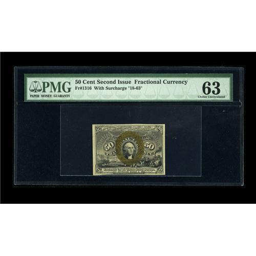 <B>Fr. 1316 50c Second Issue PMG Choice Uncirculated 63.</B></I> With a touch better centering on the back at the top this "sleeper" piece would have garnered a higher grade.<BR><BR><b>Shipping:</b> Coins & Currency (<a target="_blank" href="http://www.heritageauctions.com/common/shipping.php">view shipping information</a>)