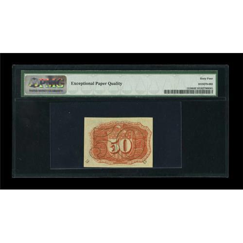 <B>Fr. 1316 50c Second Issue PMG Choice Uncirculated 64 EPQ.</B></I> This note poses a slight dilemma, as the bronzing is perfectly centered, however the margins are not for the full gem grade.<BR><BR><b>Shipping:</b> Coins & Currency (<a target="_blank" href="http://www.heritageauctions.com/common/shipping.php">view shipping information</a>)